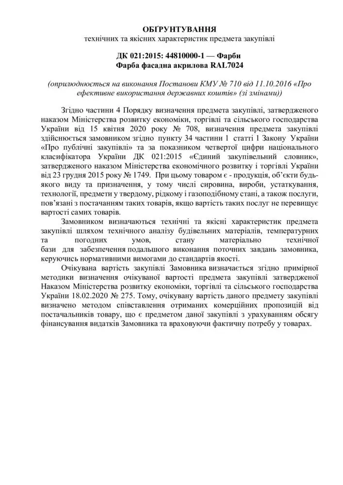 (оприлюднюється на виконання Постанови КМУ № 710 від 11.10.2016 «Про ефективне використання державних коштів» (зі змінами))