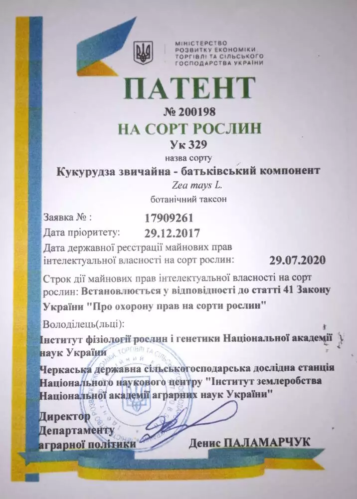 рослин Кукурудза звичайна - батьківський компонент Ук