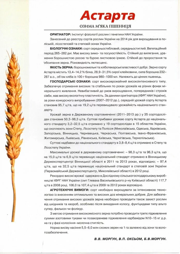 ОЗИМА М'ЯКА ПШЕНИЦЯ АСТАРТА